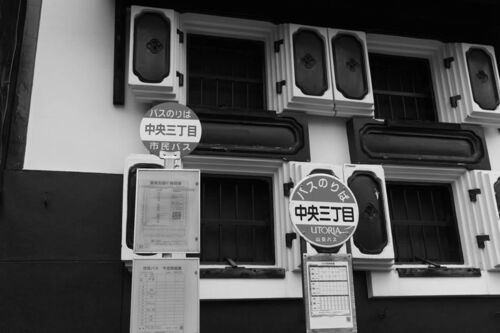 山形県米沢市にて。重厚なバス停である。バス停自体が決まり過ぎているので、待ち人も自分の姿とかに気を使ってしまうのではないだろうか。僕がそこでバスを待つ姿は似合わなそうだ。 LEICA M MOMNOCHROME (CCD) / SUMMICRON M35mm ASPH