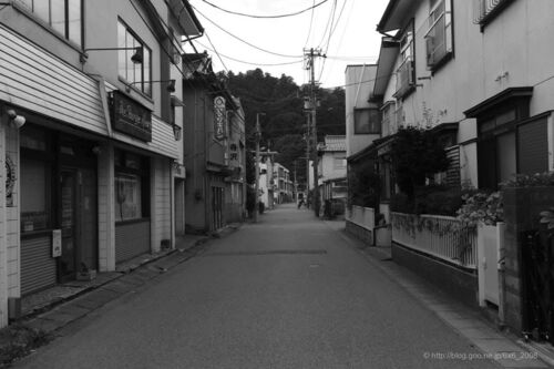 新潟県村上市の黒壁通り。ベタと言われようと、僕はこの通りが大好きだ。過去に色々な画角で撮っているが、28ミリ相当のレンズが最もしっくりくるようだ。今回の写真は、背後から自転車が来たので、ほんの一瞬、撮影タイミングがずれている。またクランクの…